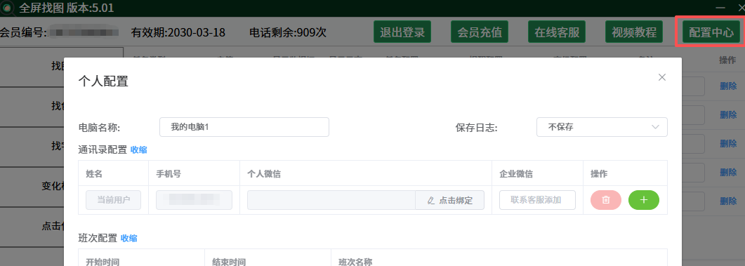 其次,您需要在 配置中心--通讯录 中去添加需要提醒的电话号码,软件会默认添加当前注册账号的电话,如果您还要通知更多的人,请自行添加。