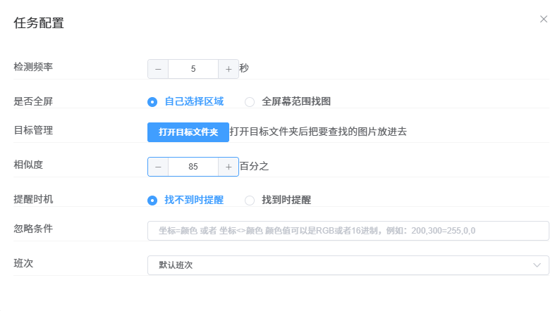 全屏找图》 是一款专注于屏幕内容智能监控与识别的自动化工具软件。该软件通过捕捉和分析屏幕指定区域的图像信息,为用户提供多种模式的自动化监控方案,旨在实现无人值守场景下的异常响应与智能提醒。