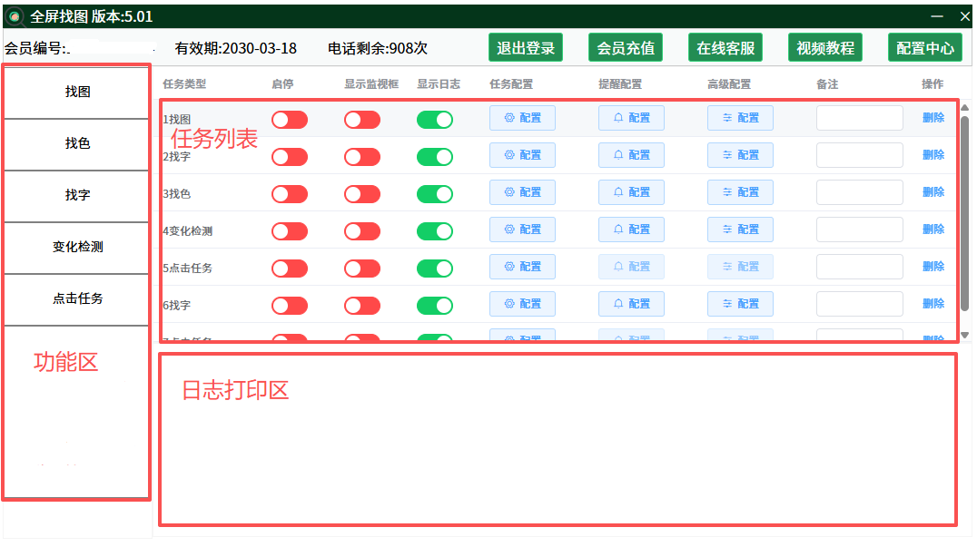 【1】找图模式:可在屏幕指定区域内,精确判断一张或多张预设图片是否存在或消失。